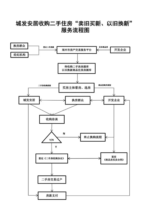 換房群眾可自主選擇通過“鄭州市房產交易服務平臺”或其它渠道掛牌出售二手住房、選購新建商品住房,自由交易實現“賣舊買新、以舊換新”。(二手住房不受城發(fā)安居公司收購條件限制、新建商品住房須位于主城區(qū)范圍內)
