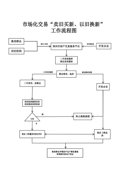 換房群眾可自主選擇通過“鄭州市房產交易服務平臺”或其它渠道掛牌出售二手住房、選購新建商品住房,自由交易實現“賣舊買新、以舊換新”。(二手住房不受城發(fā)安居公司收購條件限制、新建商品住房須位于主城區(qū)范圍內)
